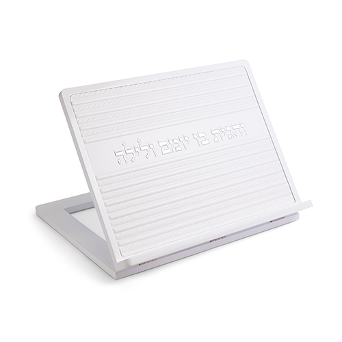 / שטנדר מעץ לבן עם פלקטה דמוי עור ואותיות בולטות 38×30 ס"מ