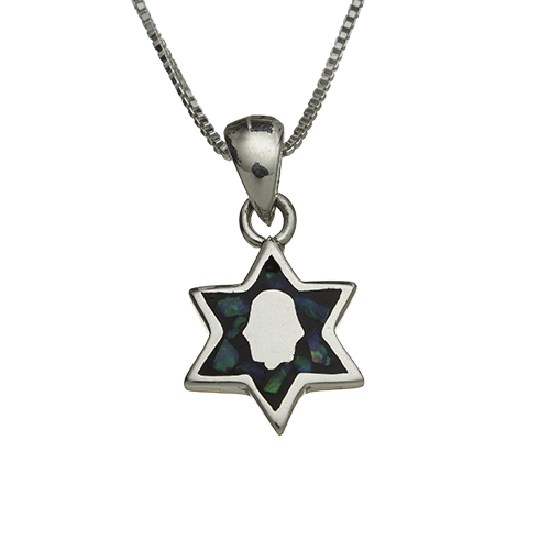 Sterling Silver Necklace With Opal Stone "star Of David" 1 cm