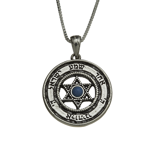 שרשרת כסף מגן דוד עגול 2.5 ס"מ עם אבן טורקיז 8798