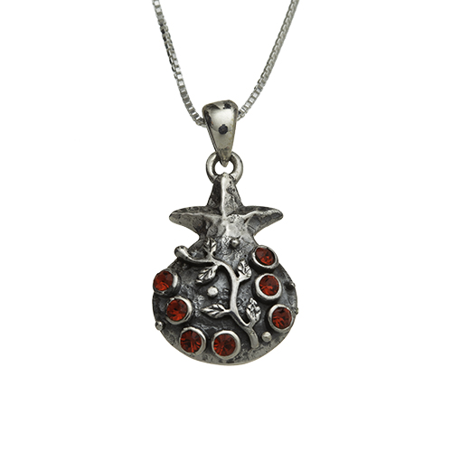 שרשרת כסף רימון 2.5 ס"מ עם אבנים אדומות 8430