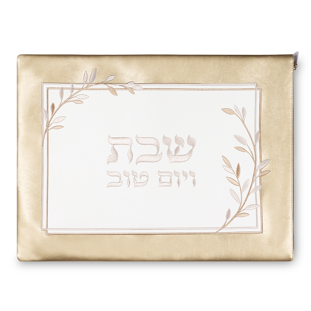 / תיק חלה מהודר דמוי עור עם רוכסן לבן וברונזה