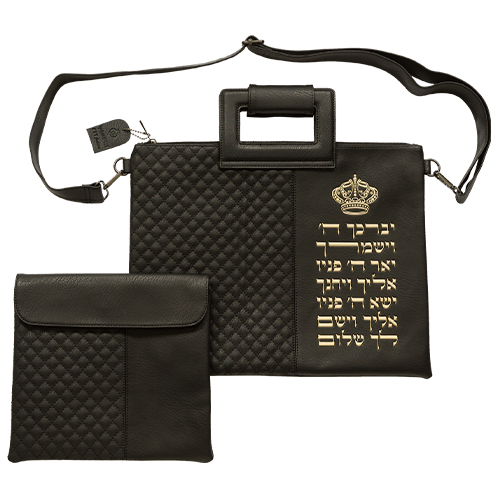 תיק מפואר לטלית דמוי עור שחור אותיות בולטות "וי