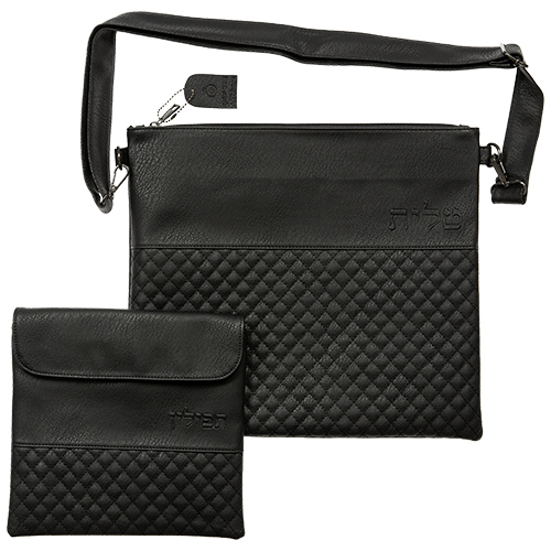 תיק מפואר לטלית תפילין דמוי עור גוון שחור 36*33