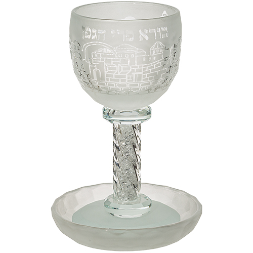 / גביע קריסטל מהודר "ירושלים" עם אבנים לבנות 16 ס"מ