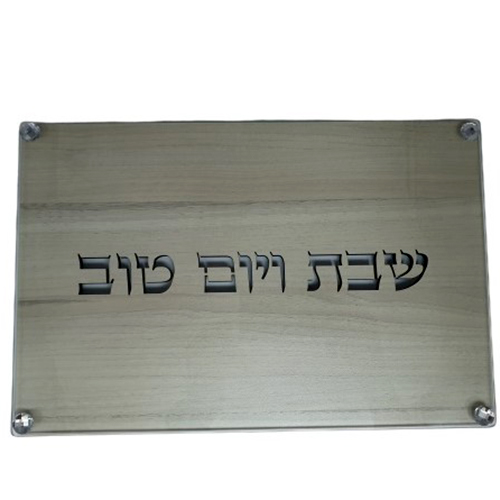 / מגש שבת ויום טוב-עץ בהיר חיתוך עץ עם זכוכית