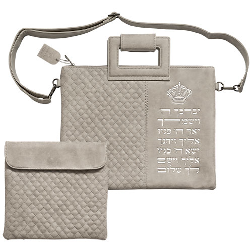 203 תיק מפואר לטלית דמוי עור אפור אותיות בולטות "וי