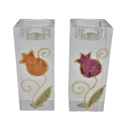 פמוטי קריסטל עם פלקטה הדלקת נרות "ירושלים" 24 ס"מ