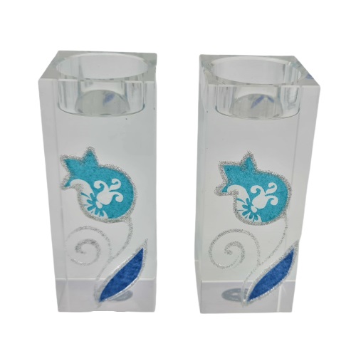 פמוט קריסטל זוגי בעבודת יד 12 ס"מ