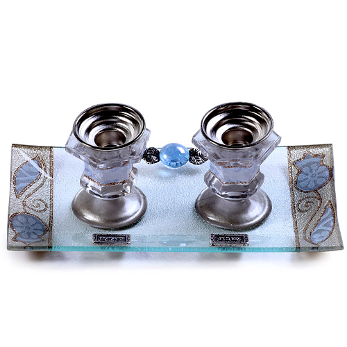 פמוטי קריסטל עם פלקטה הדלקת נרות "ירושלים" 24 ס"מ