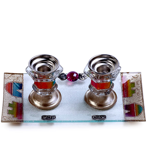 פמוטי קריסטל עם אבנים 16*8 ס"מ