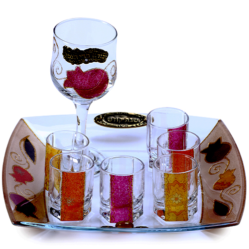 סט גביע קידוש+6 כוסיות יין עם מגש