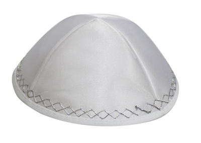 703כיפה סטן לבן 20 ס"מ עם עיטור ריקמה
