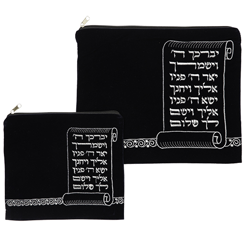 Velvet Talit-tefilin Set 36*29, Dark Blue With Embroidery כיסוי פלסטיק PVC