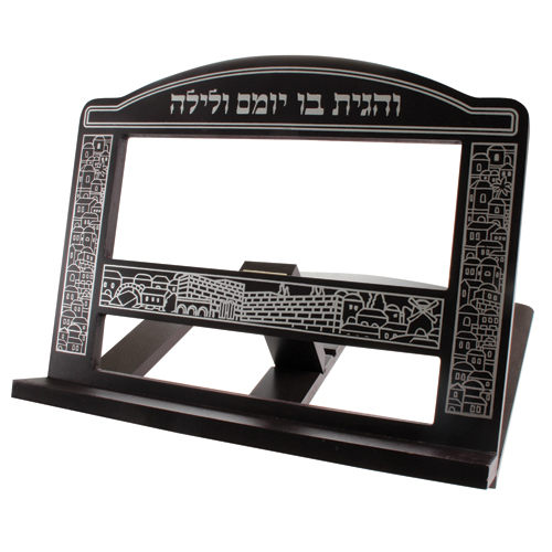 Mahagony Wooden Shtender 29×37 Cm- Dark Brown With Jerusalem Themed Design _