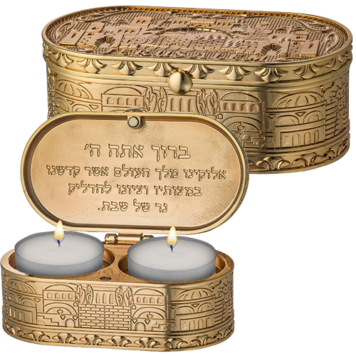 / 803 פמוטי נסיעה זהב בקופסא עם מכסה "ירושלים" 4X9 ס"מ