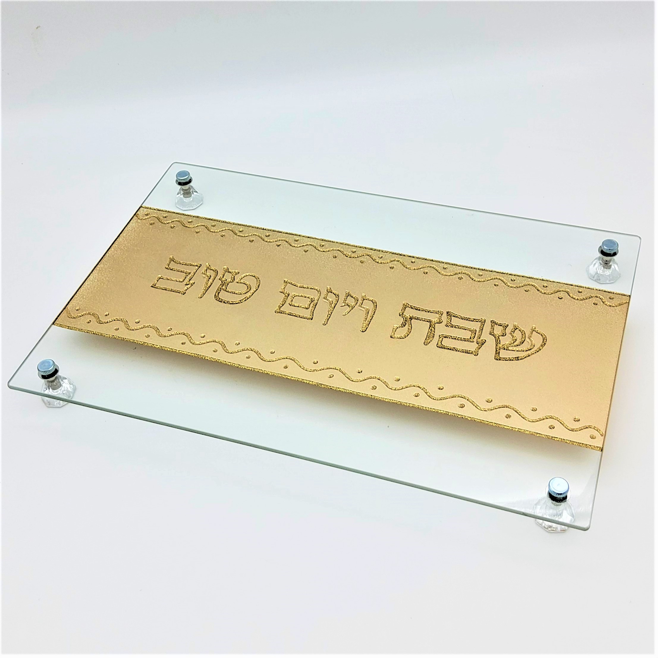 מגש זכוכית שבת קודש בעבודת יד 28*38 ס"מ