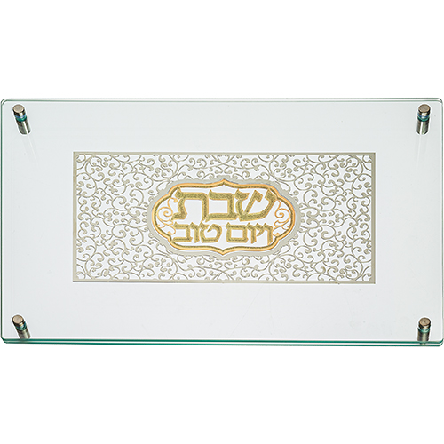 / 903 מגש חלה מהודר מזכוכית עם פלקטה "עיטורים" 30*44